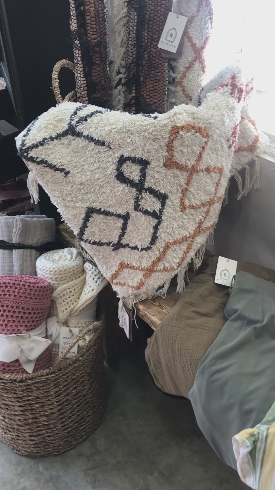 Cotton Tufted Rug with Abstract Design and Fringe | 2' x 3'