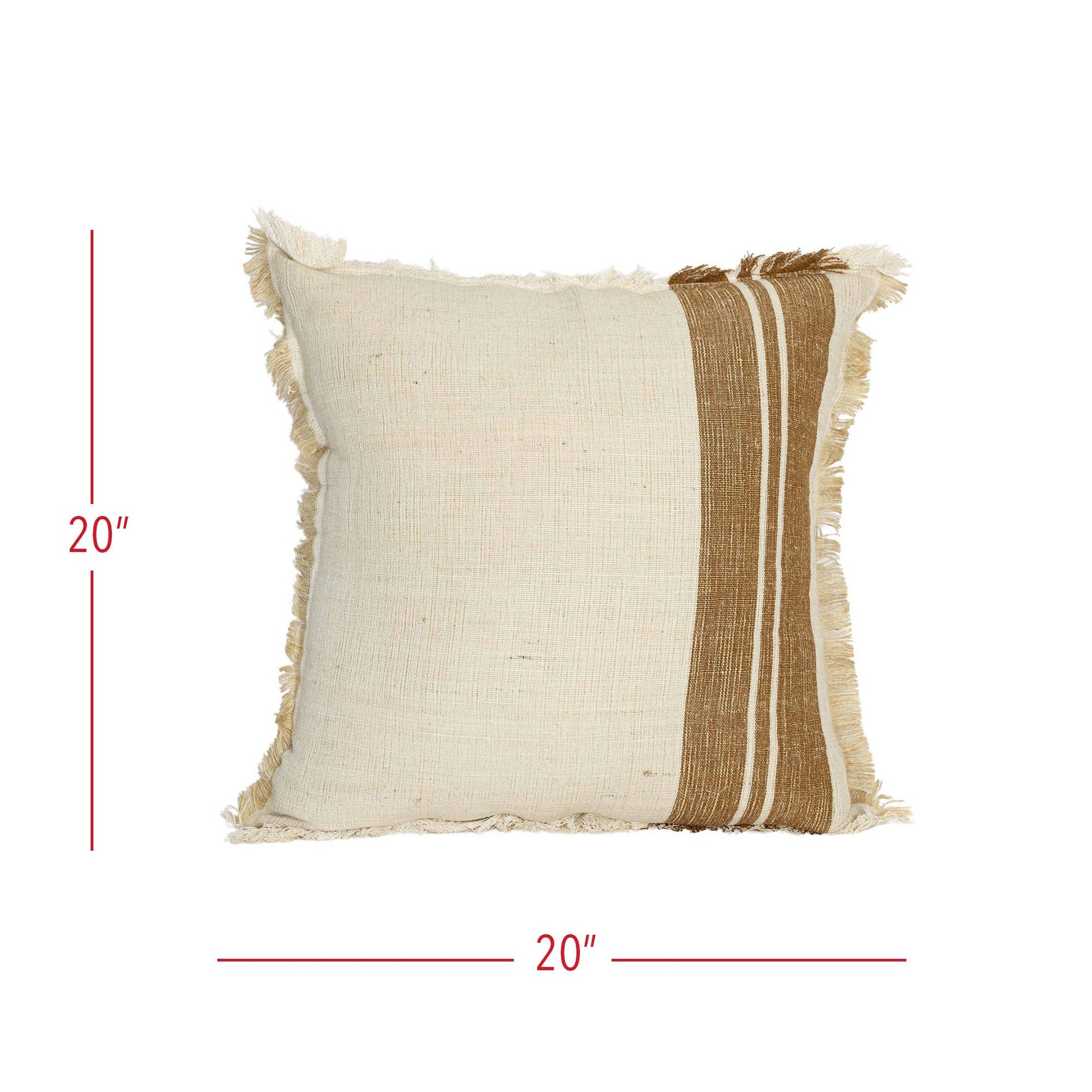 Add texture and warmth to your decor with this brown striped throw pillow made with cotton and jute. Fringe accents all four edges for a luxurious touch.