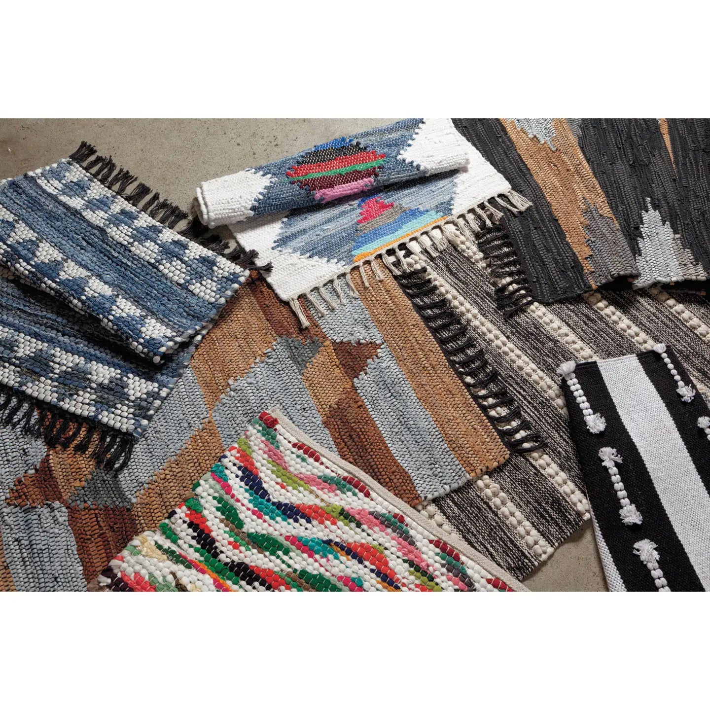 Authentically crafted in India using up-cycled leather fabric scraps, these rugs create a textural statement in the home. The leather strips are collected from furniture and upholstery factories and woven by hand by skilled weavers. Each piece is unique.