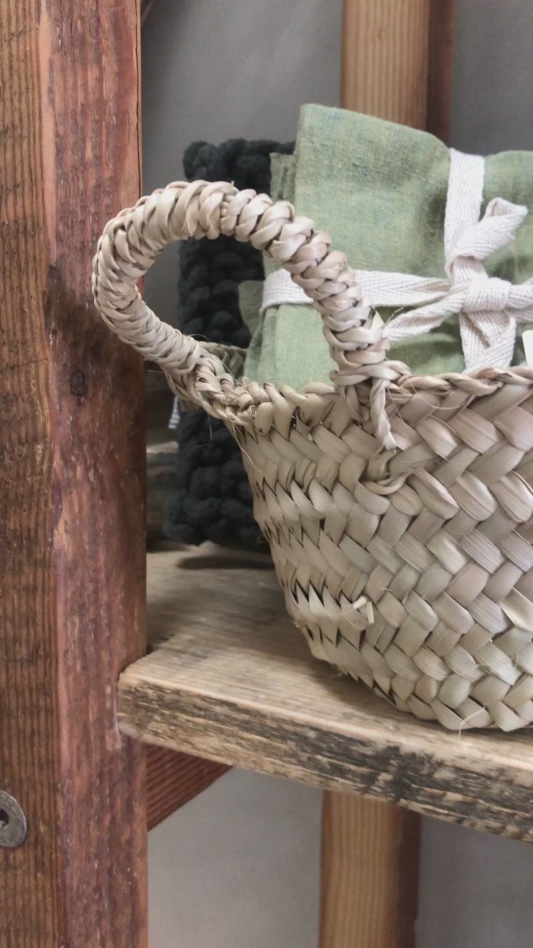Handwoven from sustainable palm leaves, Twisted palm leaf rope handles