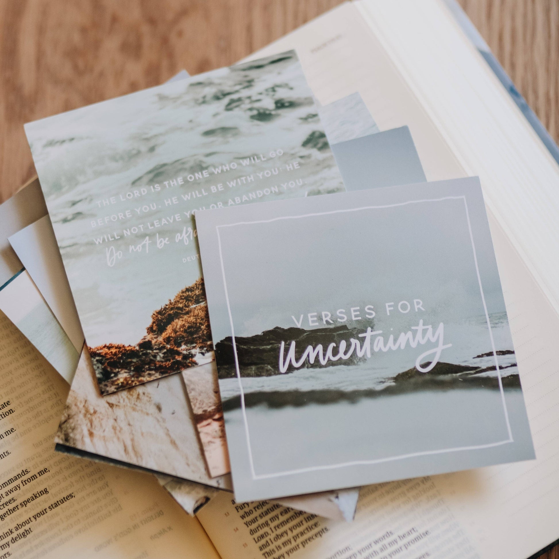 Looking for guidance in uncertain times? Check out our Verses for Uncertainty Verse Card Set! This set includes 20 beautifully designed 4x4 cards featuring Bible verses that speak to life's uncertainties. They're perfect for memorization and reflection. Give the gift of comfort and faith this holiday season!